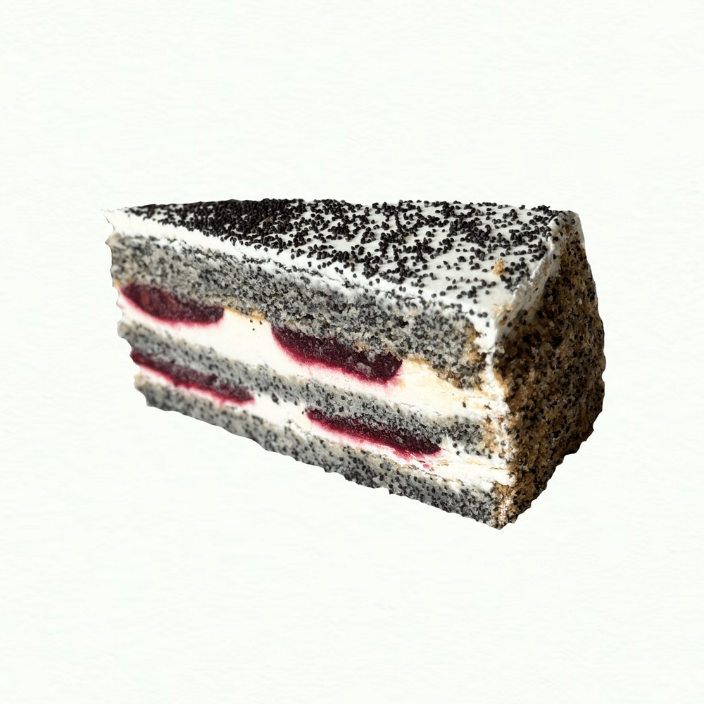 Сочный маковый бисквит со сливочно-творожным кремом с добавлением сочной вишни с корицей, придающий необычный пряный вкус этому нежному десерту