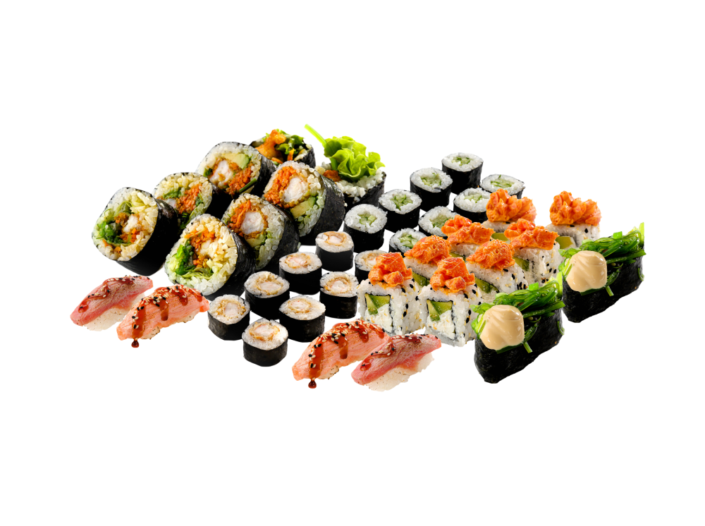 Тар тар с курицей, Кимпаб умами, Маки огурец, Маки креветка, Гункан чука 2шт, Суши опалённый лосось 2 шт, Суши опалённый тунец 2шт